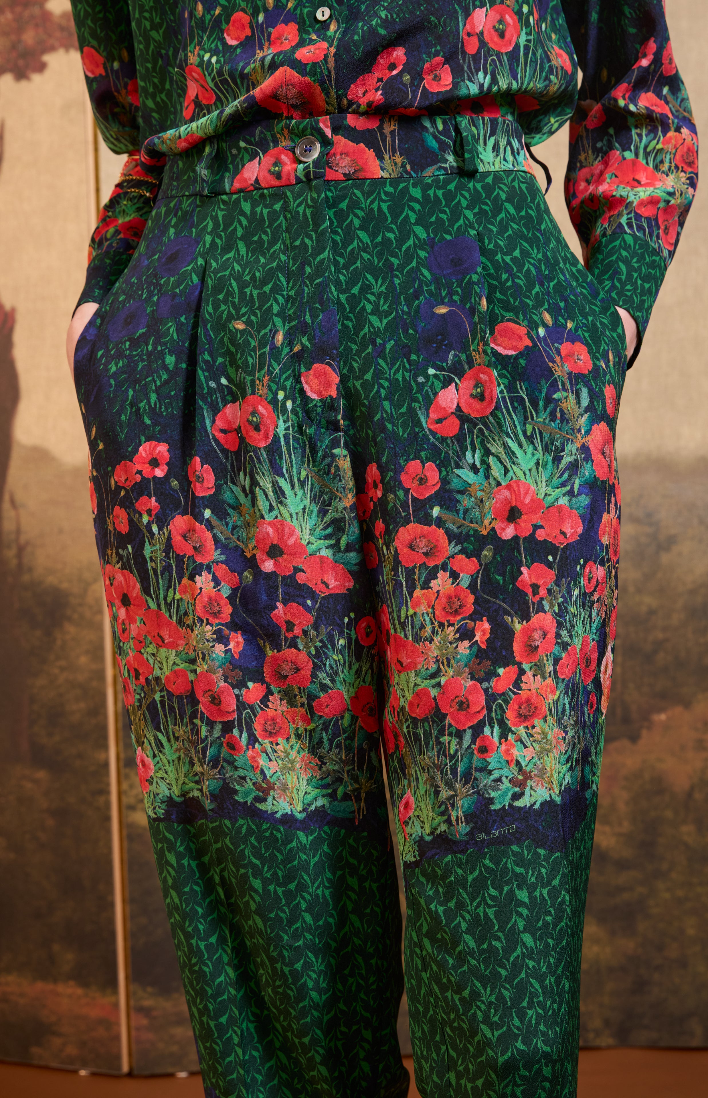 SS26-P001 Pantalón estampado "Campo de amapolas"