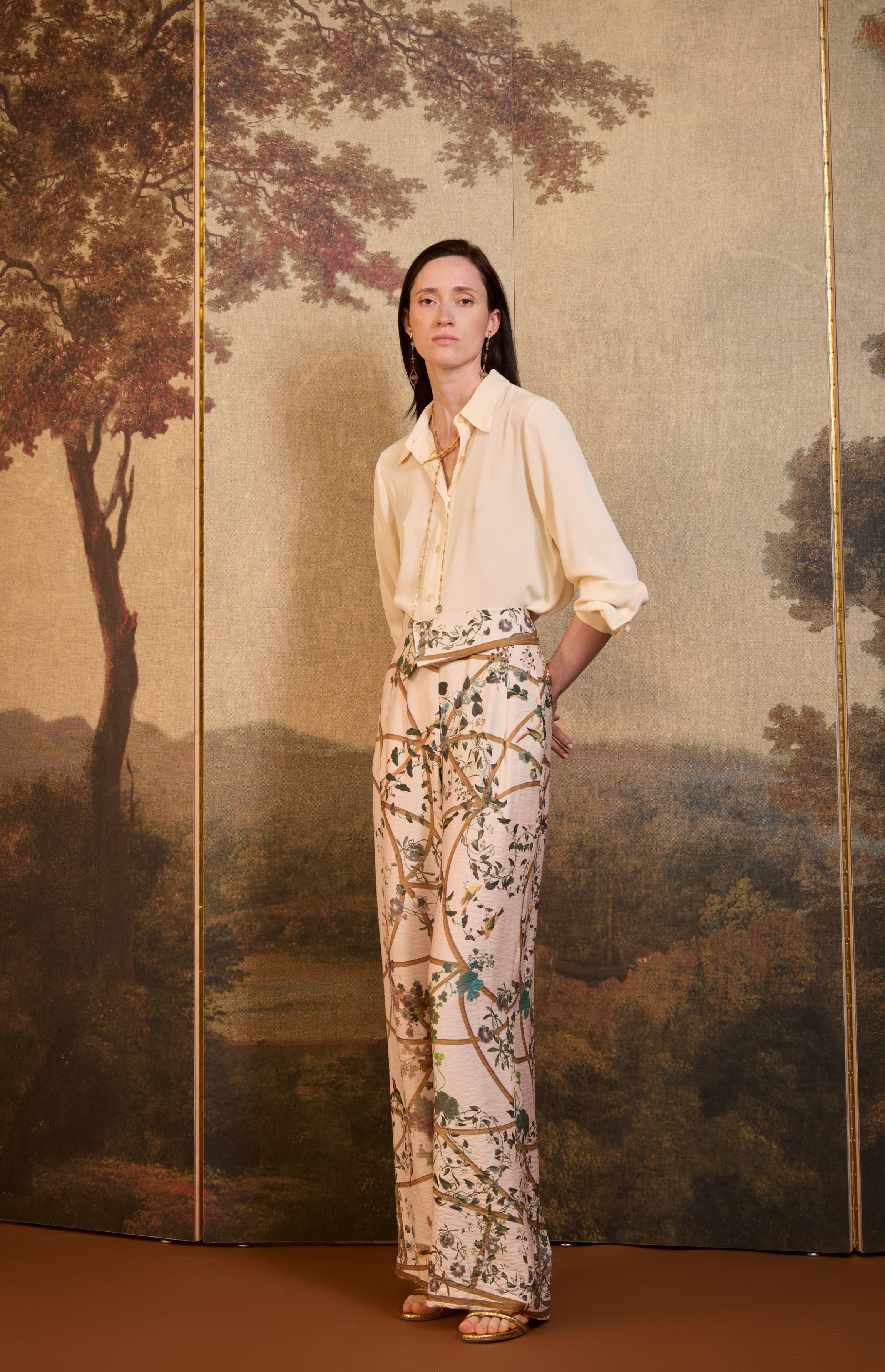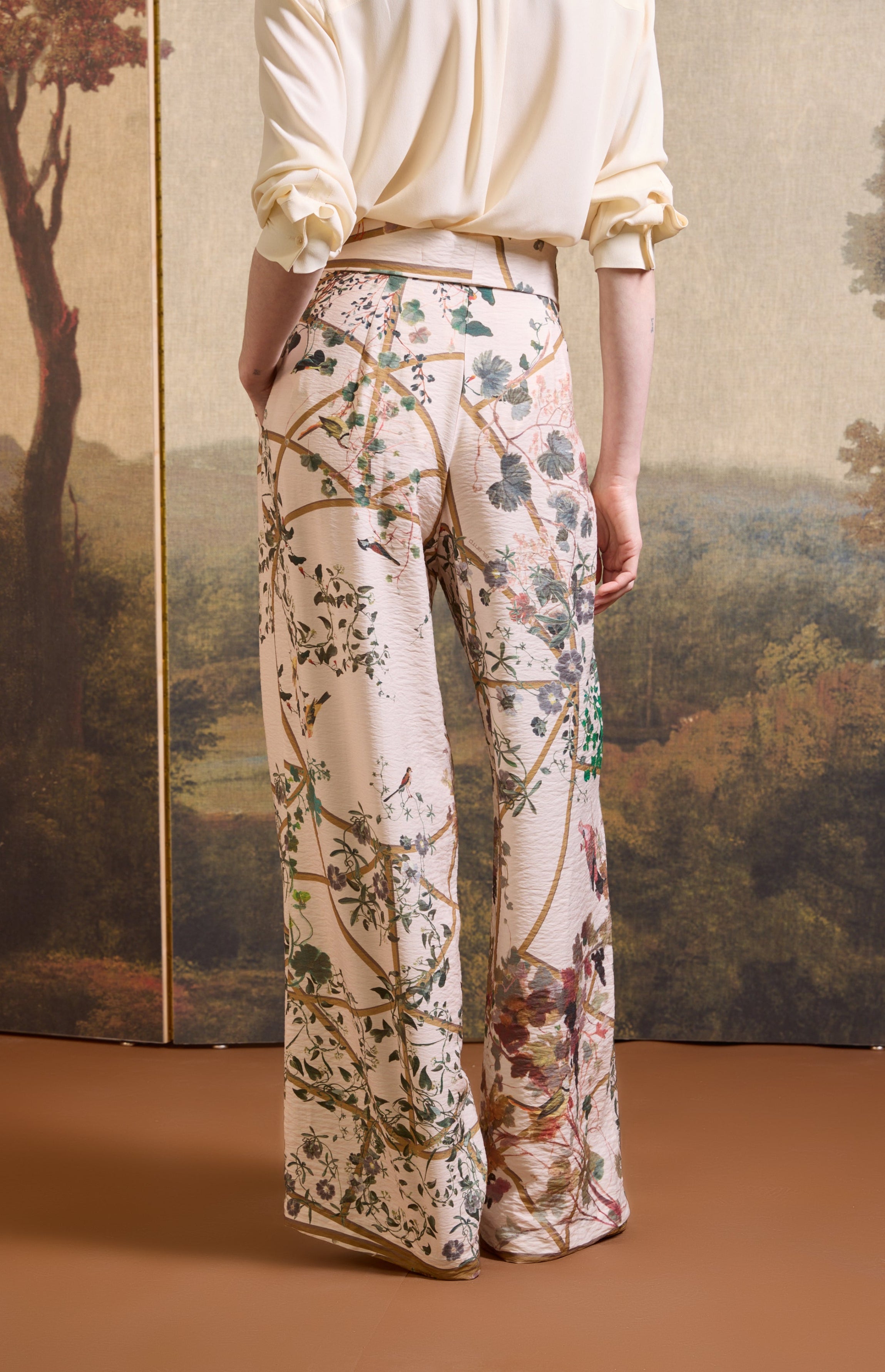 SS26-P003 Pantalón estampado "Pérgola y pájaros"