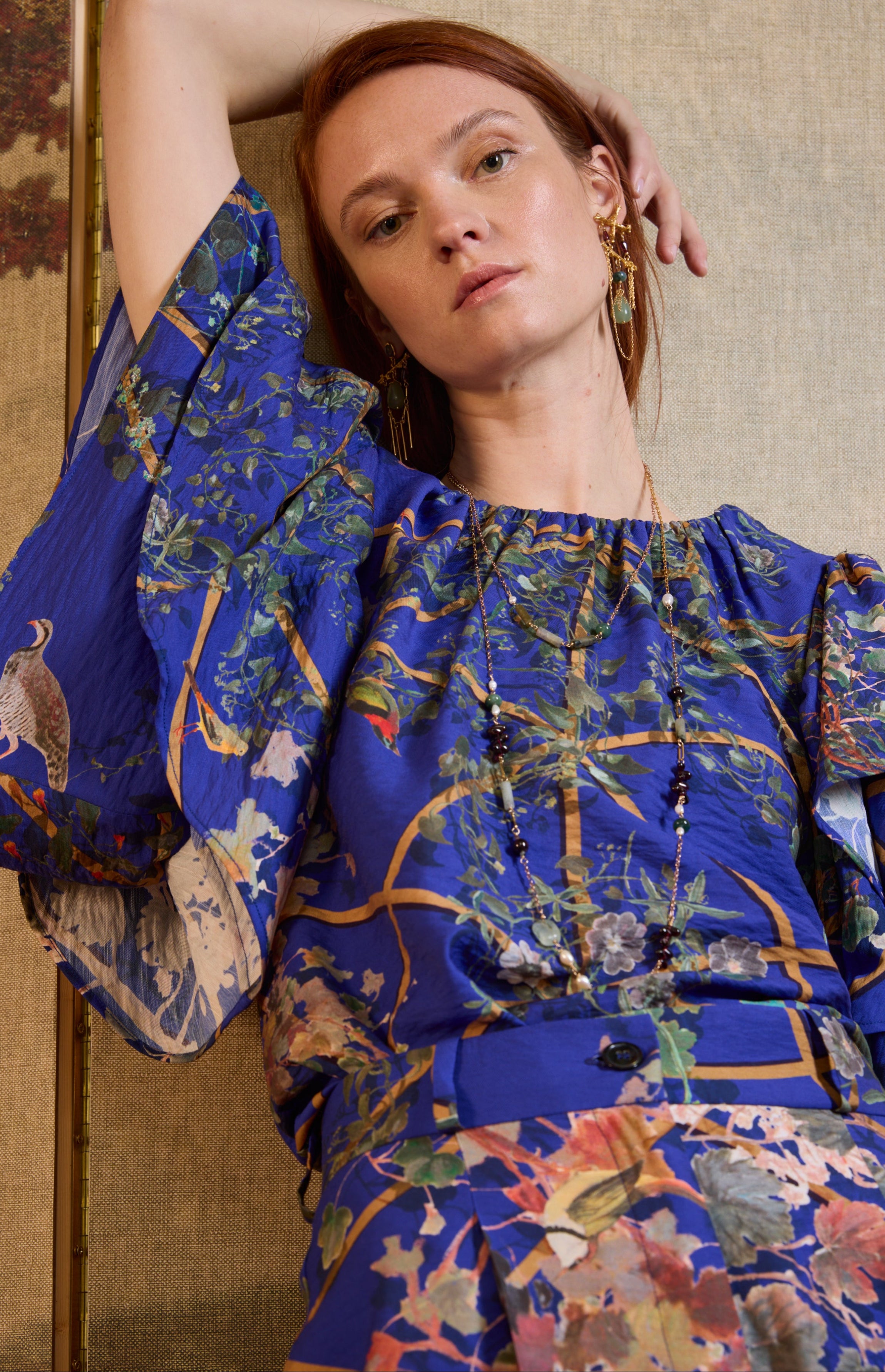 SS26-B018 Blusa estampado "Pérgola y pájaros"