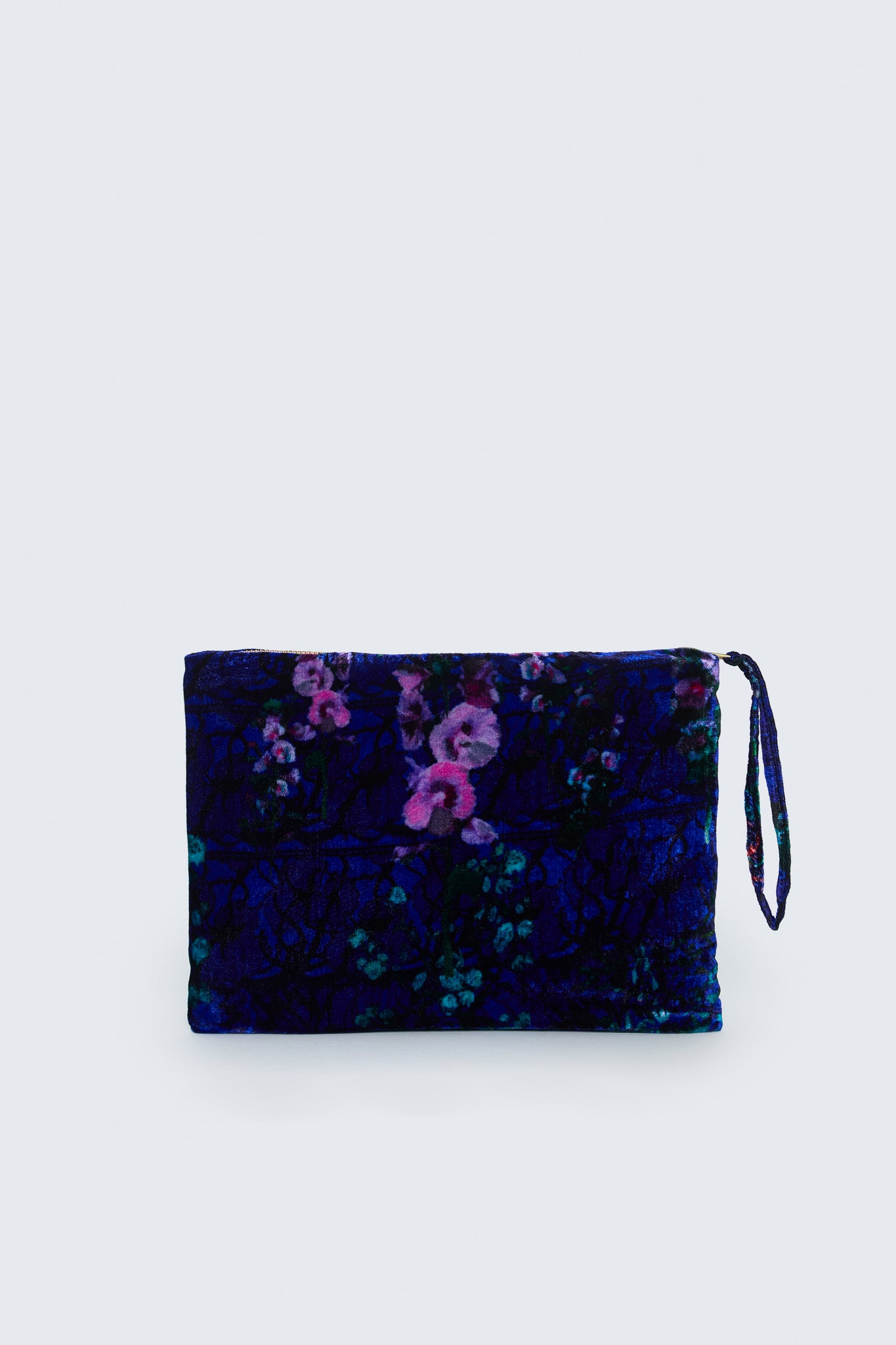 Bolso azul de terciopelo, Estampado "Floral sobre encaje"