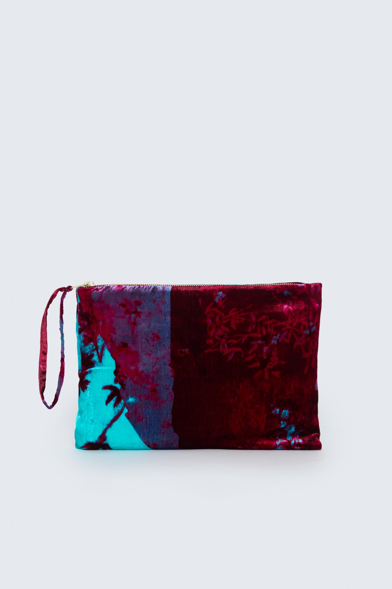 Bolso Granate Cyan de terciopelo, Estampado "Papel pintado"