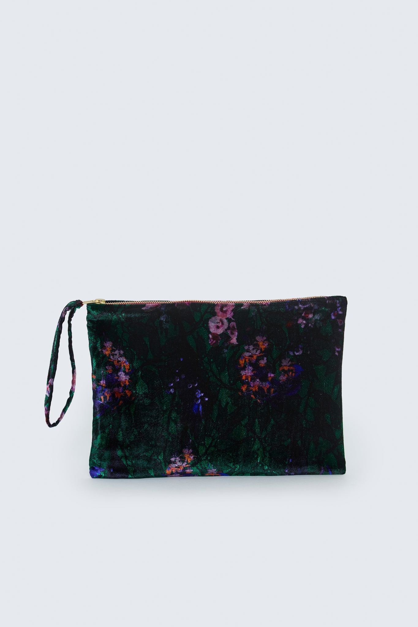 Bolso verde de terciopelo, Estampado "Floral sobre encaje"